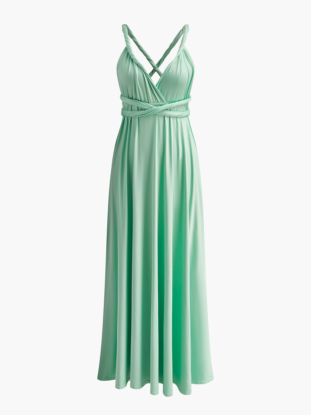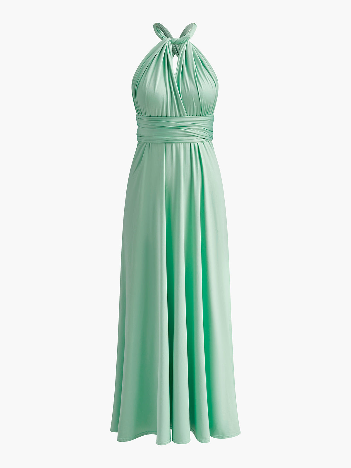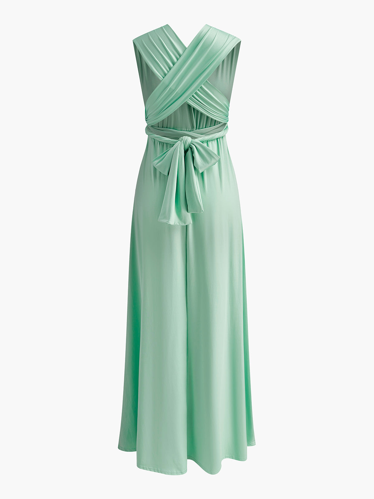 Елегантна вечерна плисирана рокля с кръстосан гръб и колан