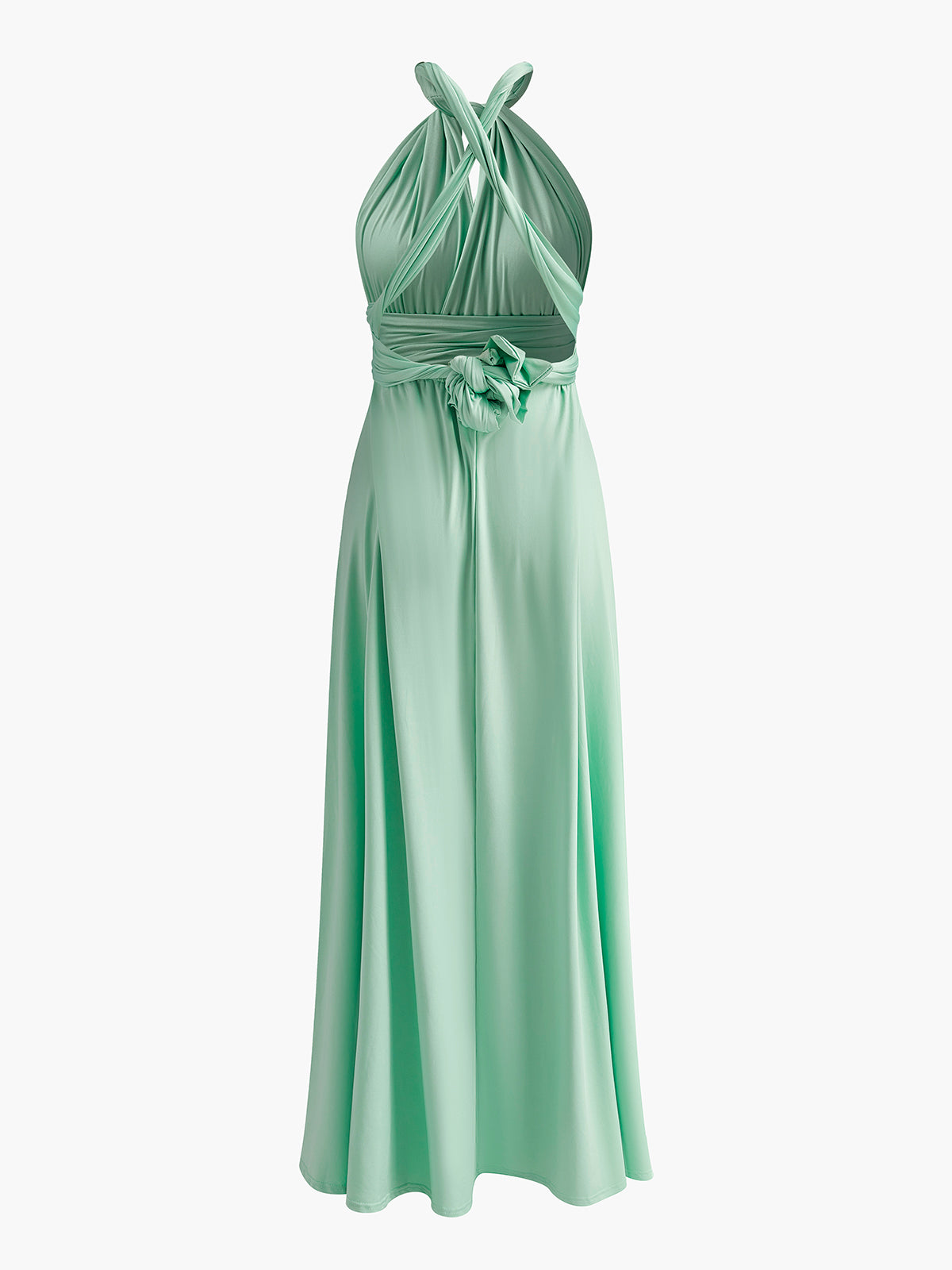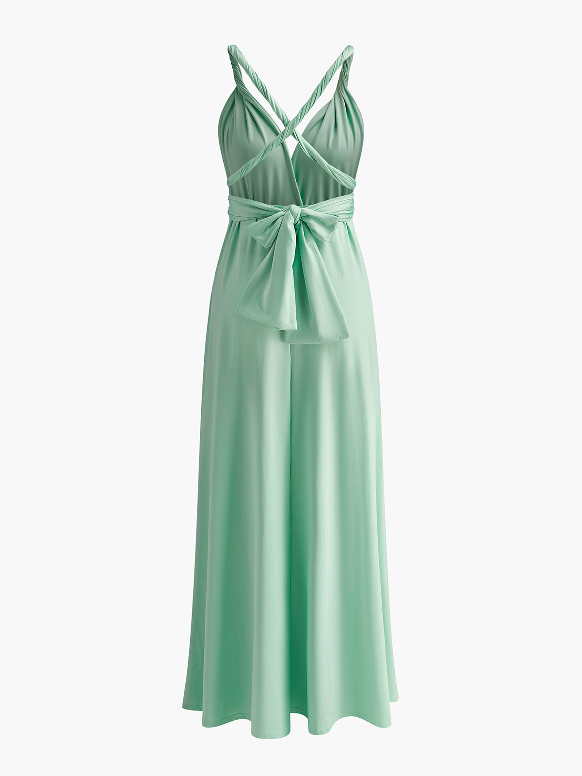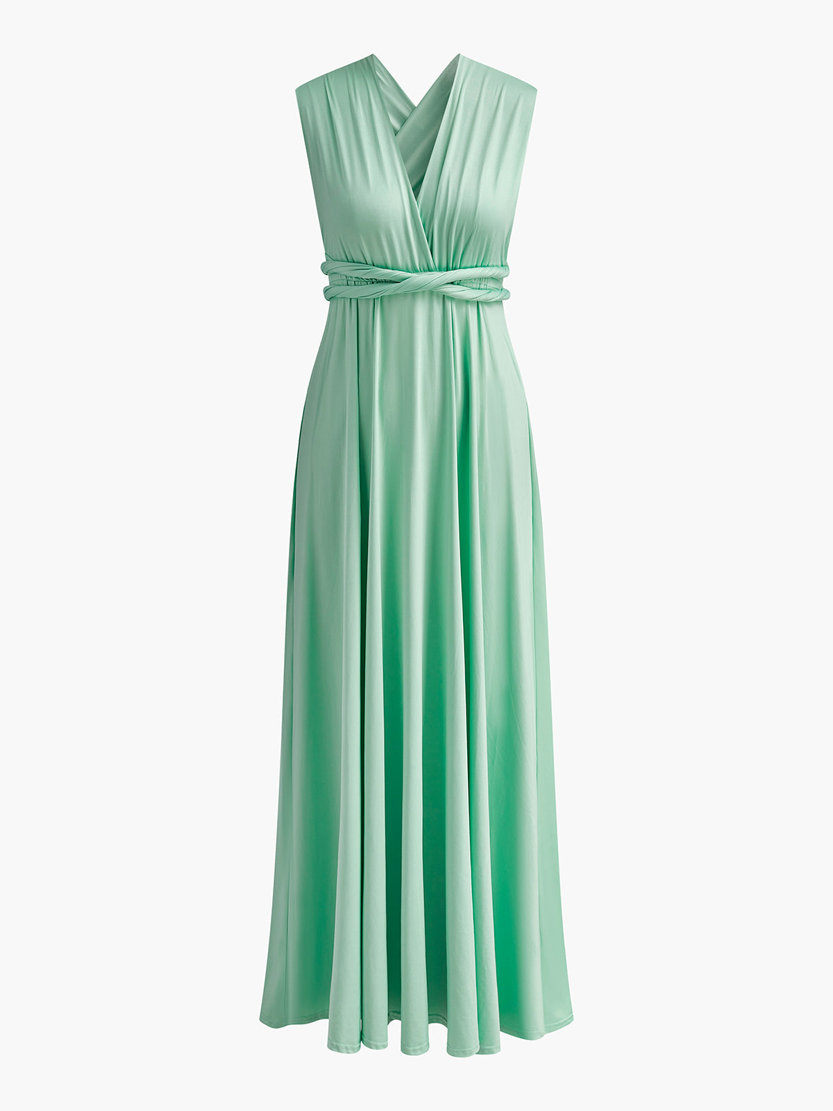 Елегантна вечерна плисирана рокля с кръстосан гръб и колан