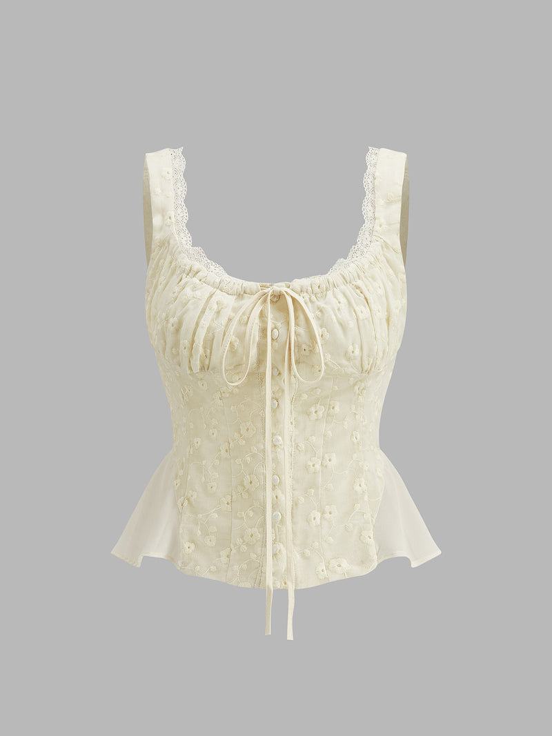 Елегантна блуза пеплум с флорален мотив, тънка дантела и шифонен дизайн