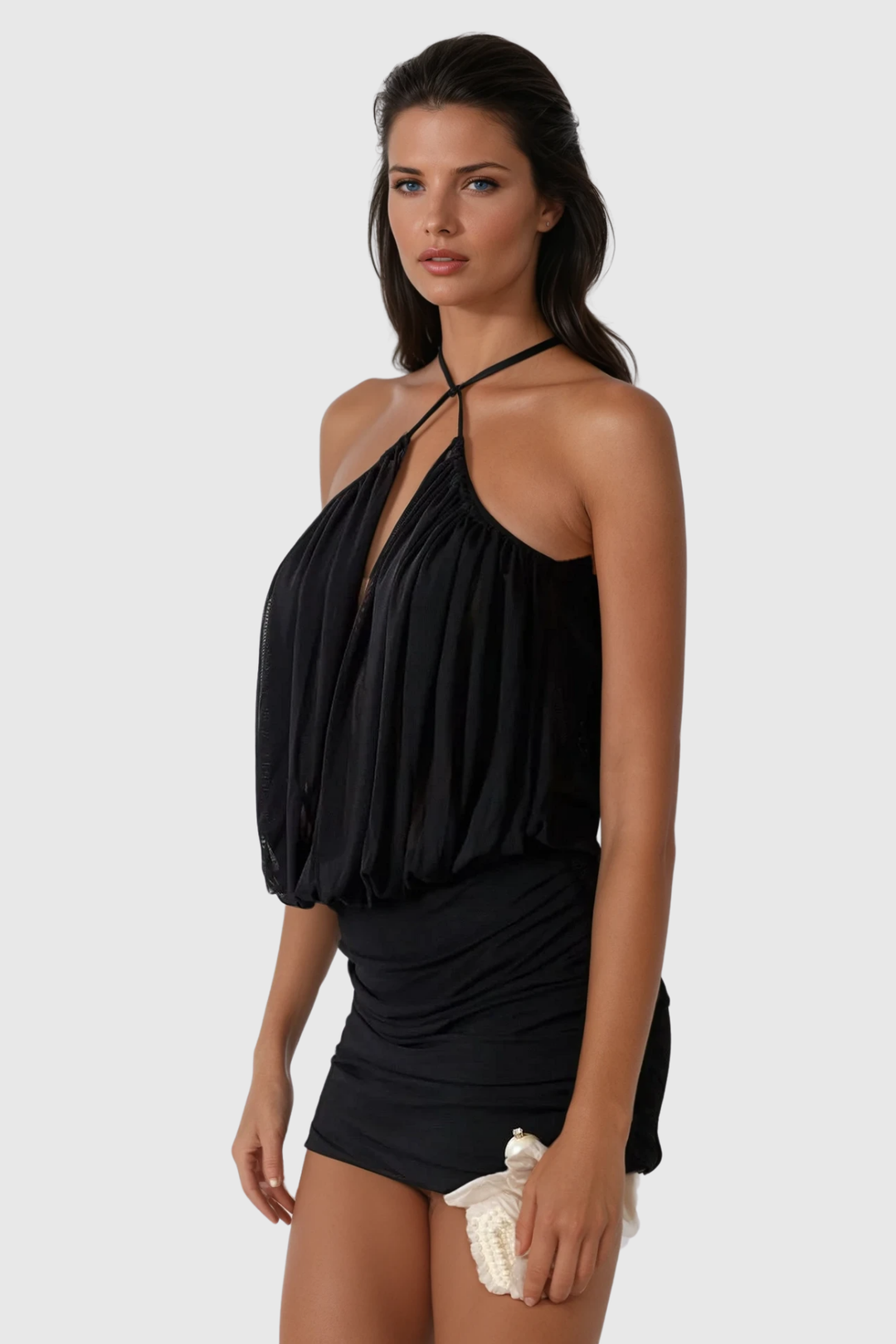 Мини черна рокля с гол гръб