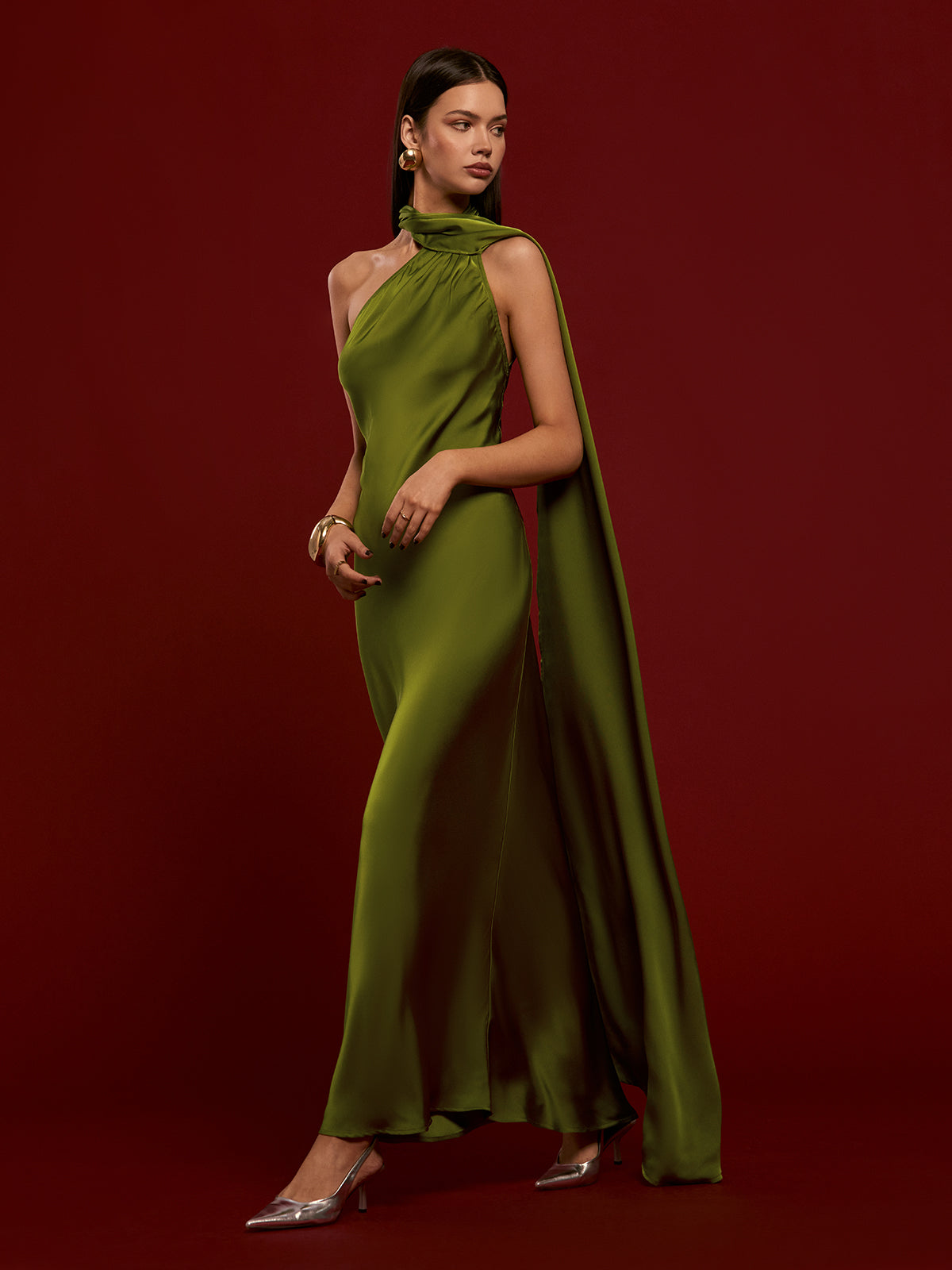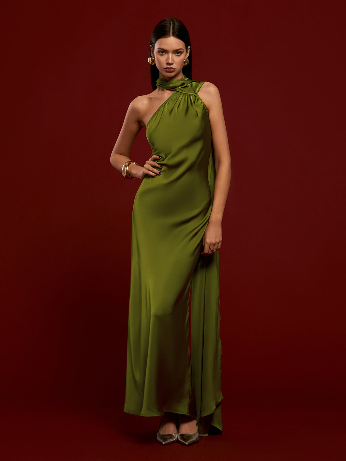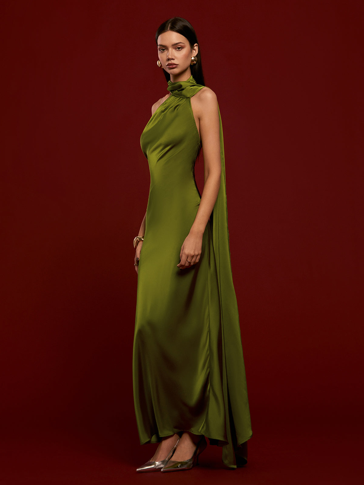Asimetrik Sırt Dekolteli Saten Abiye Elbise