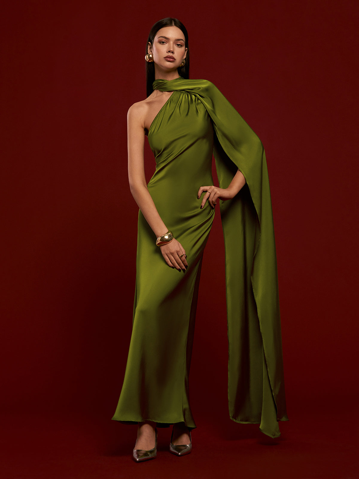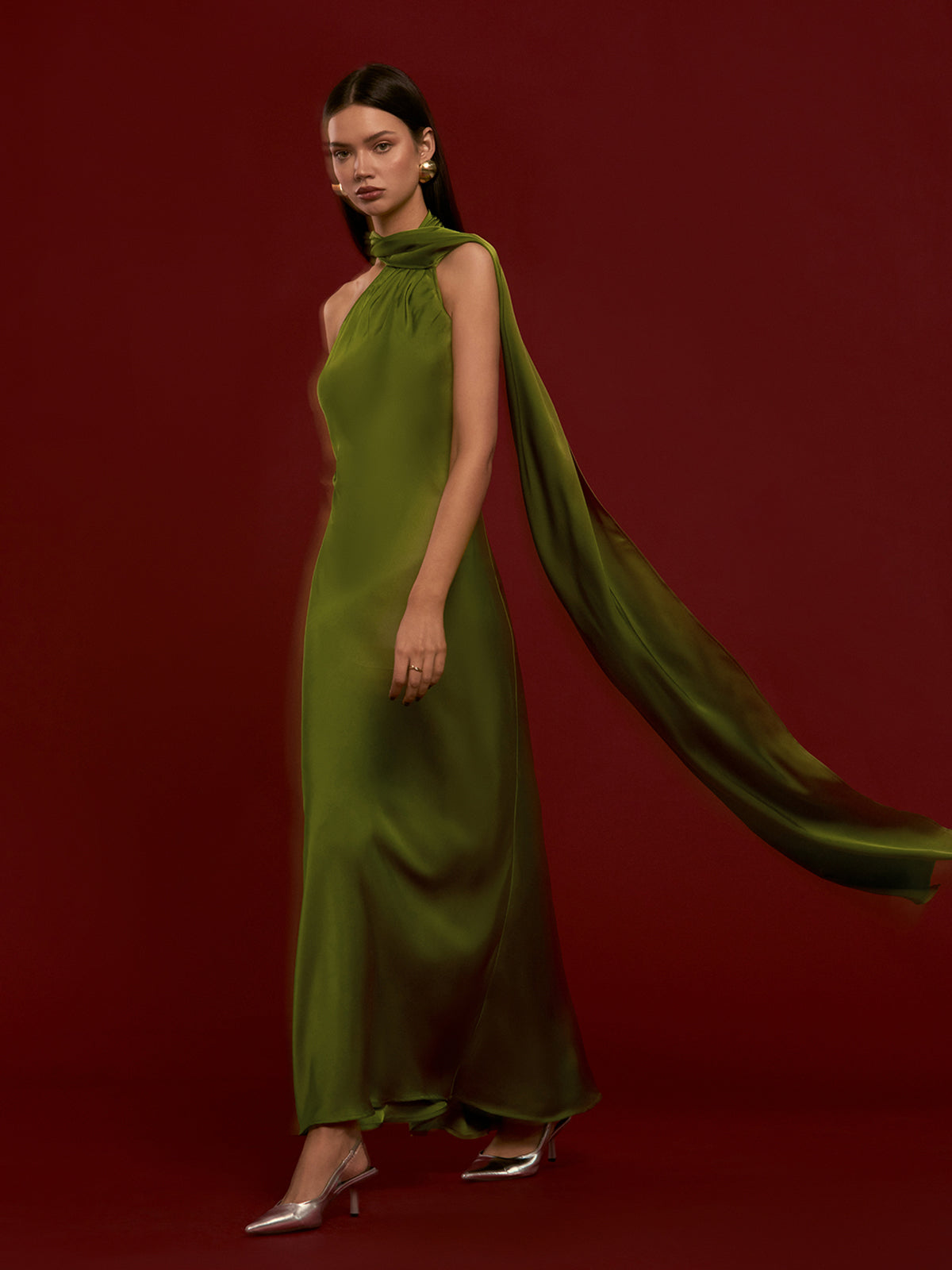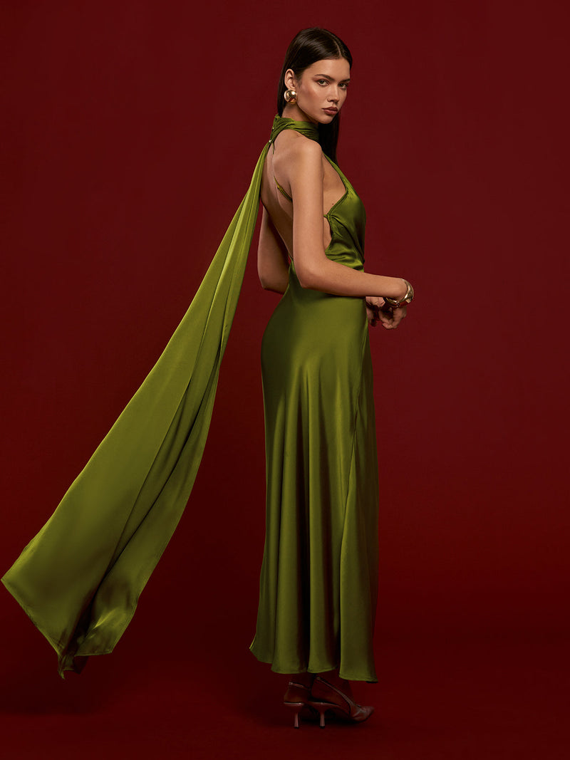Asimetrik Sırt Dekolteli Saten Abiye Elbise