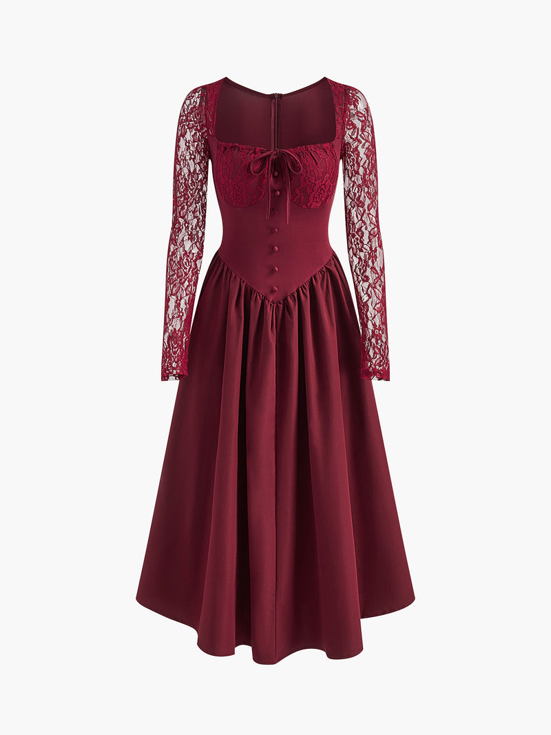 Pileli Dantel Kollu Uzun Abiye Elbise