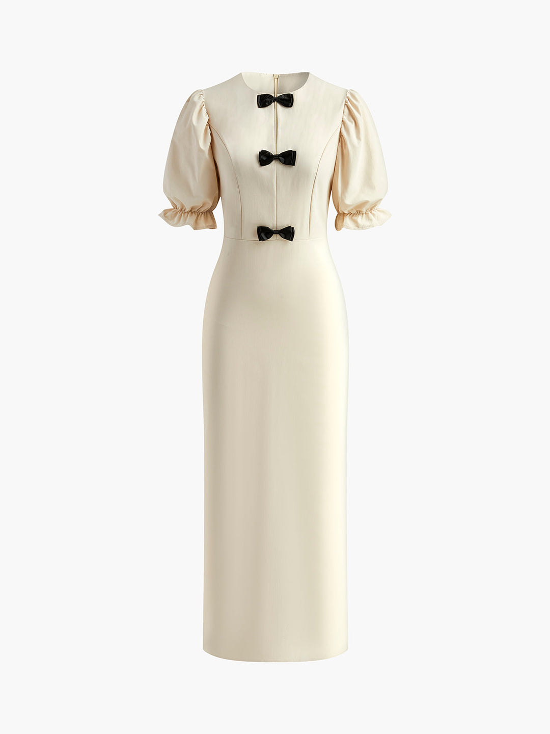 Sırtı Yırtmaçlı Puf Kollu Abiye Uzun Elbise