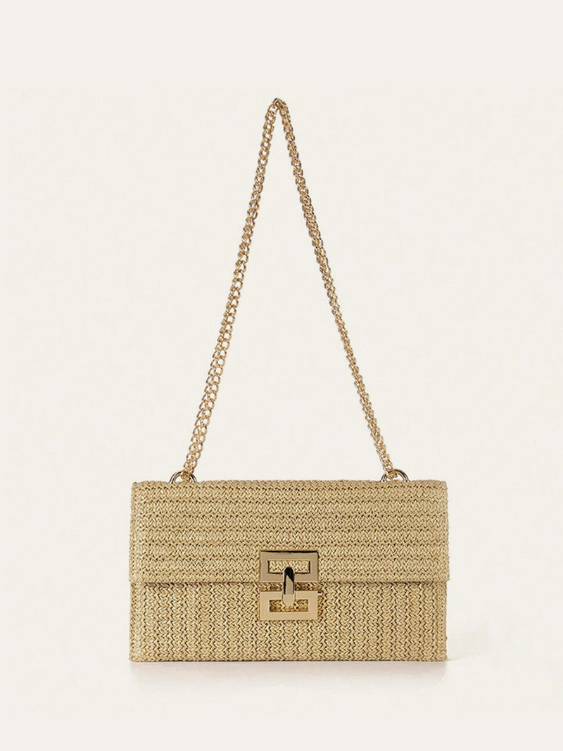 Şık Günlük Kullanım İçin Zarif Dokuma Zincir Askılı Kapaklı Omuz Çantası
