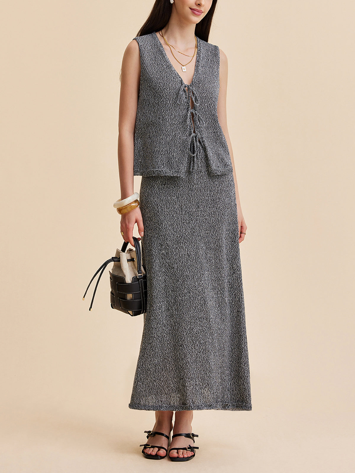 Şık Orta Bel Örgü Kaban Eteği ile Zahmetsiz Tarz