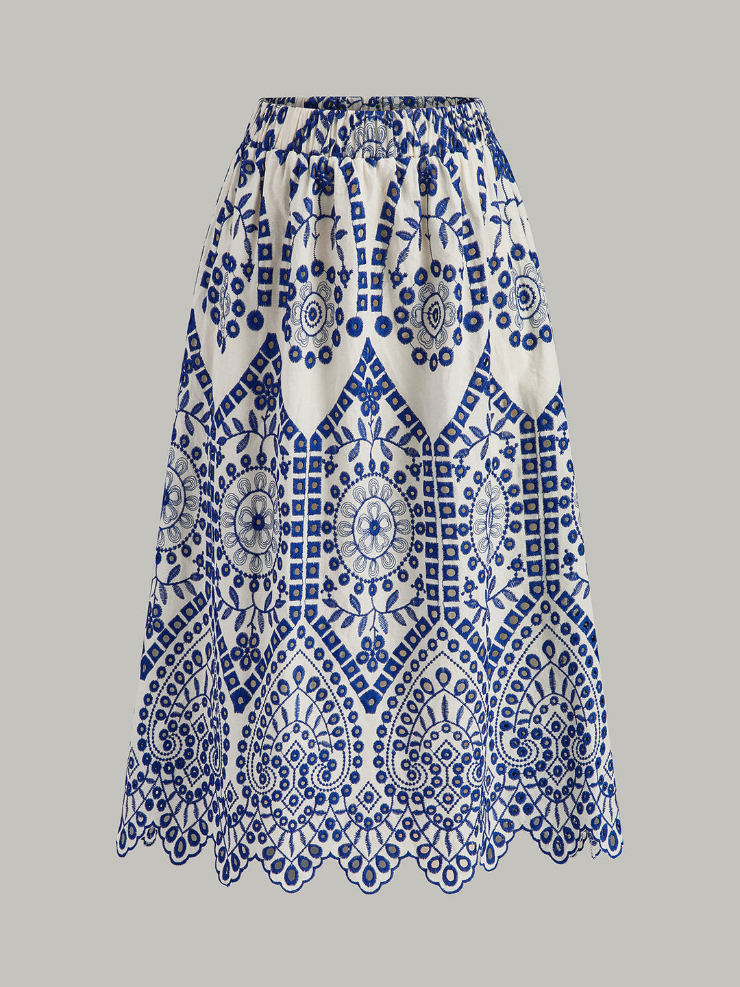 Şık Pamuklu Nakışlı Etek, Dalgalı Kenar ve Rahat Lastik Bel Bandı ile
