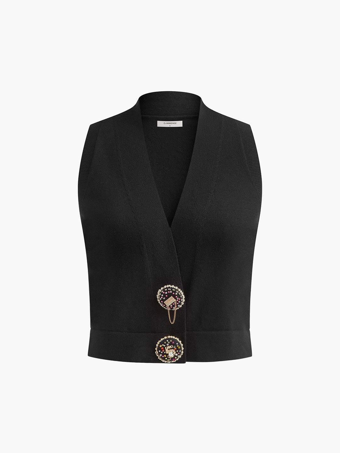 Yün Karışımlı Kristal Düğmeli Kazak Yeleği