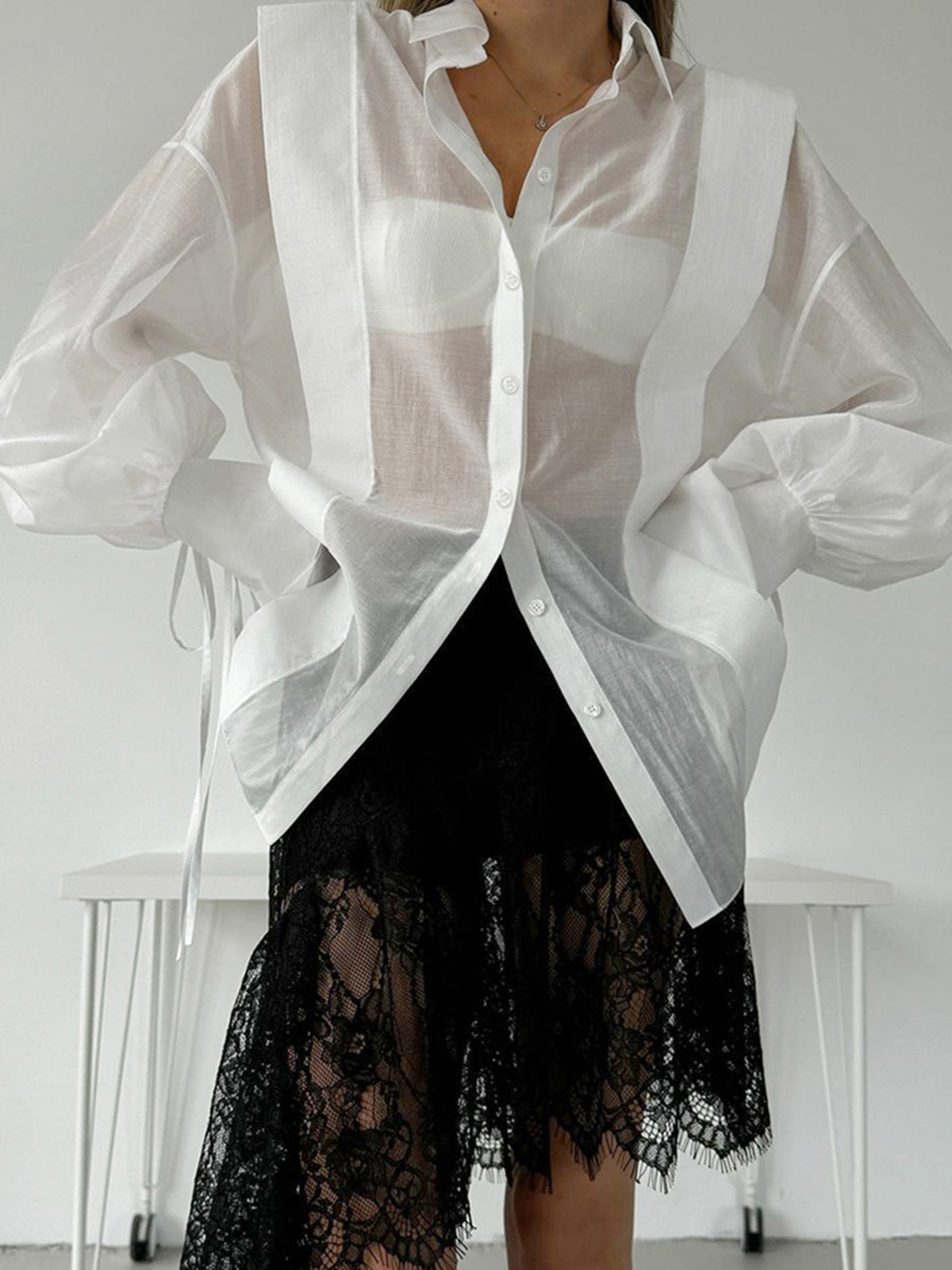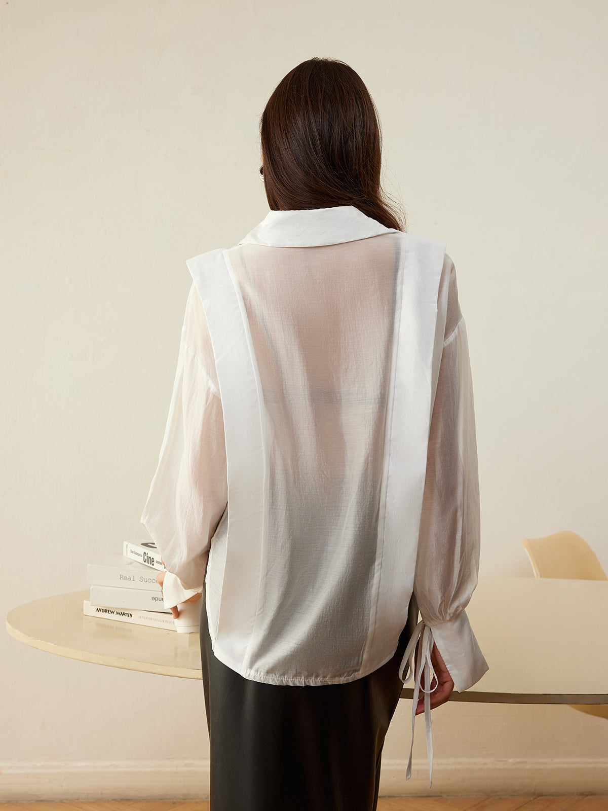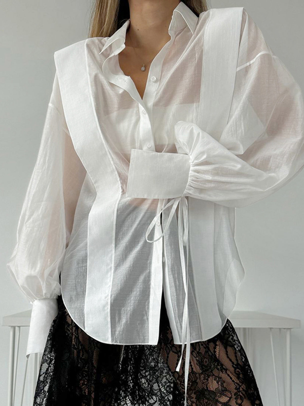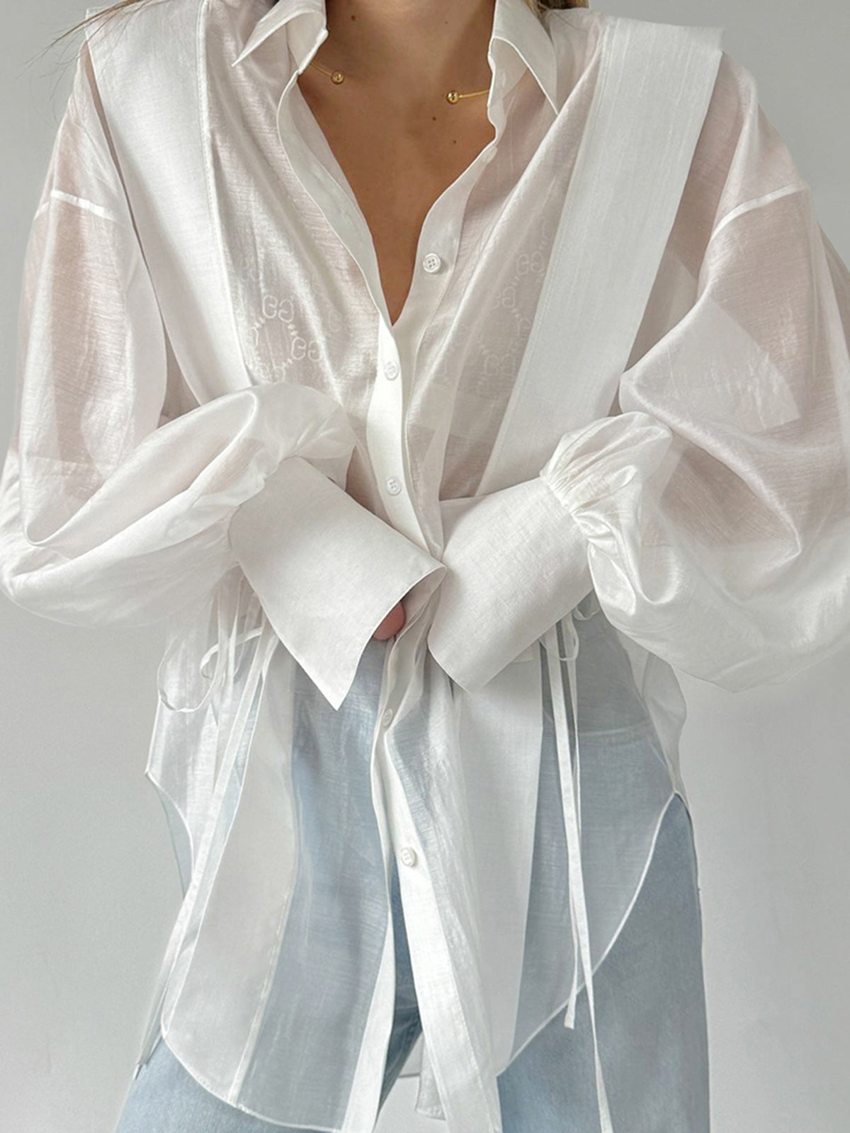 Şık Yarı Şeffaf Plise Polo Gömlek
