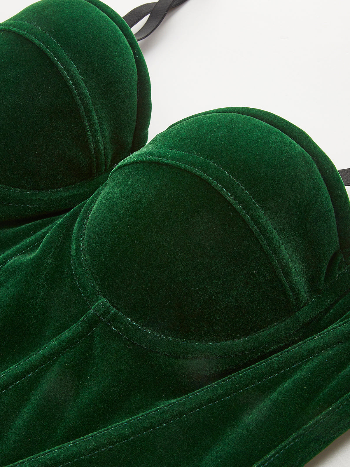 Şık Kenar Dikişli Lüks Kadife Fermuarlı Korse