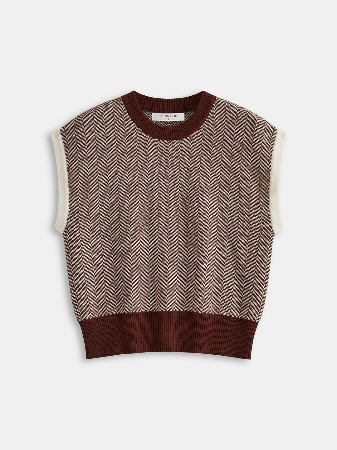 Kontrast Kenar Dikişli Jakarlı Üst ve Midi Etek Takımı