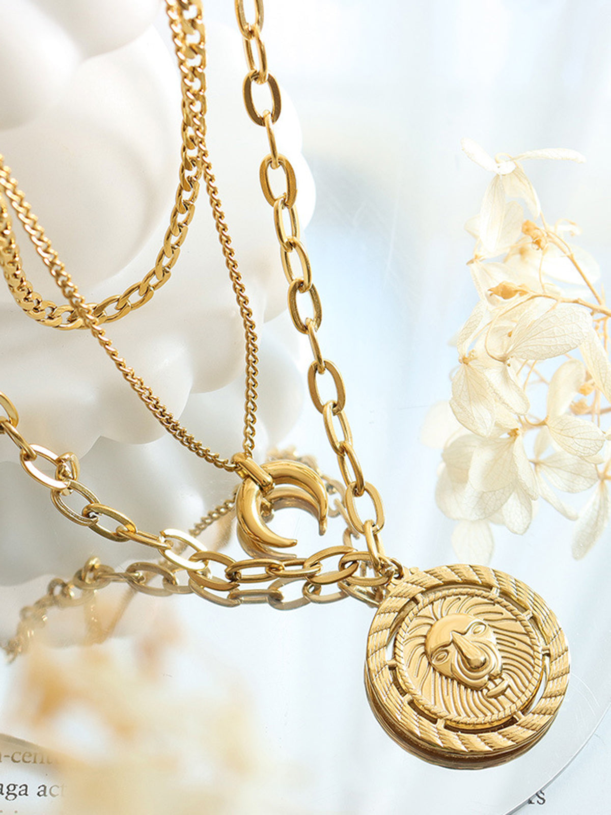Katmanlı Ay Aslanı Daire Kolye Kolye