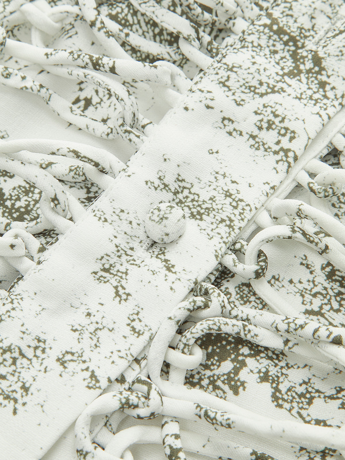 🎨 Şık Tasarım: Trendy bir baskı ve bağcıklı ön kısmı ile bu elbise, günlük görünümünüze şık bir dokunuş katar.