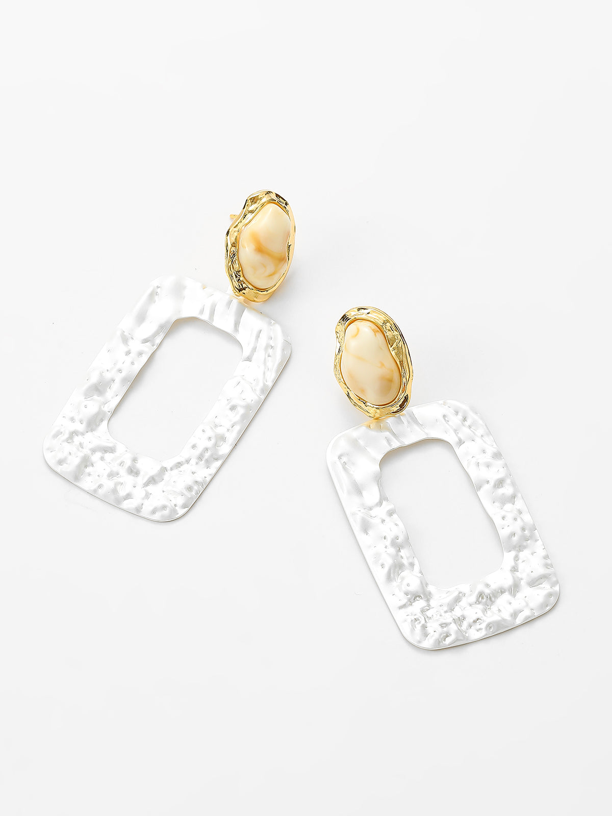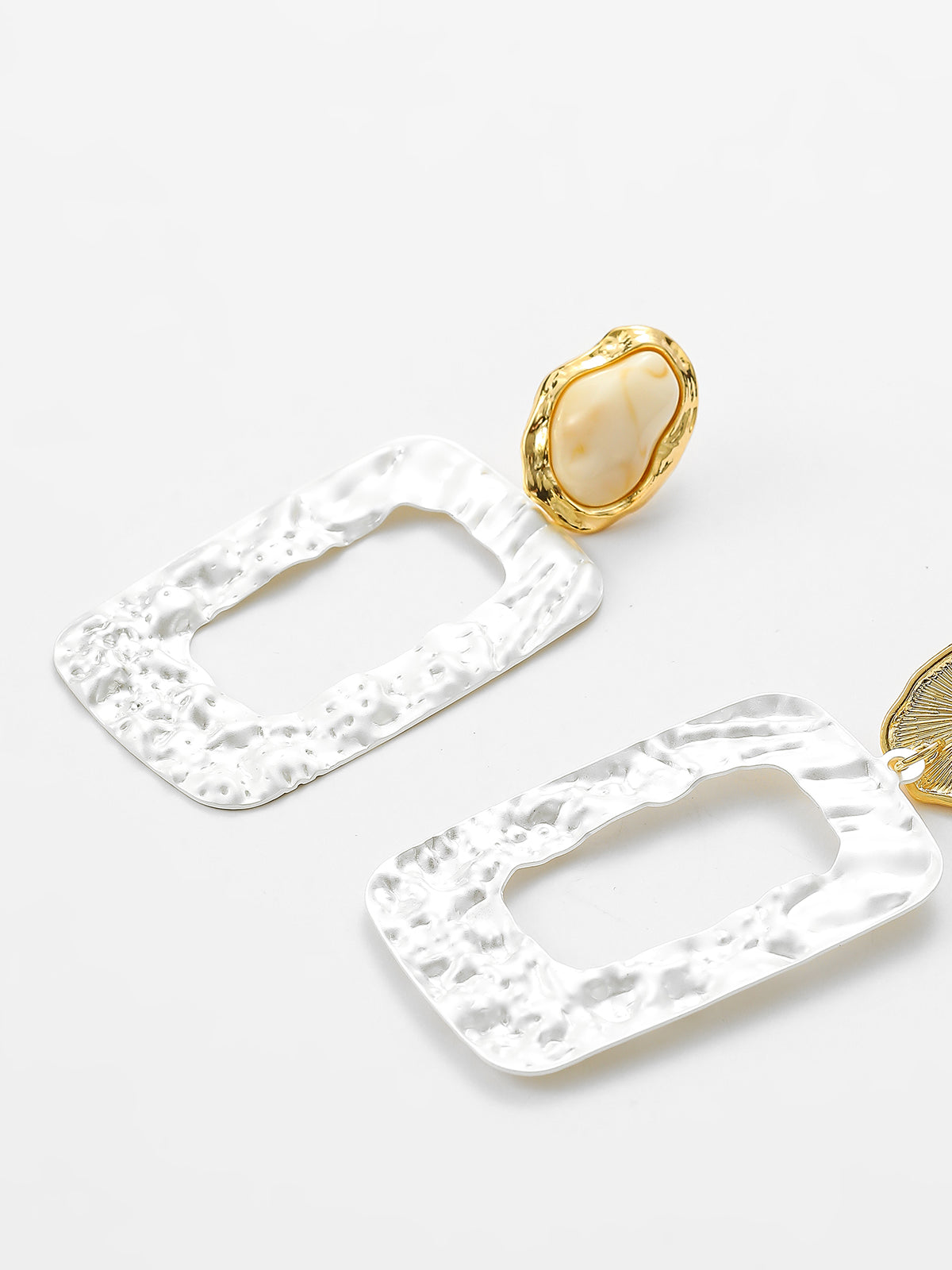 Taşlı Kare Pileli Çerçeve Damla Küpe