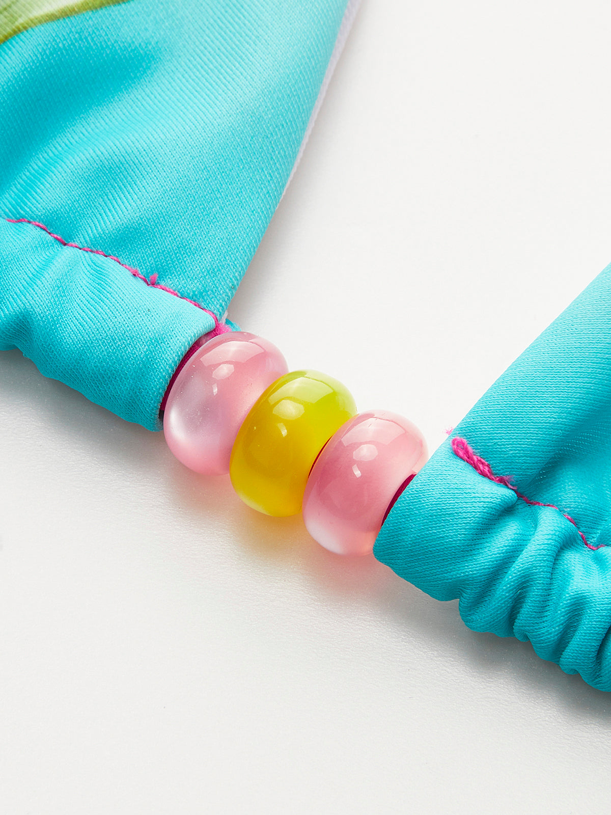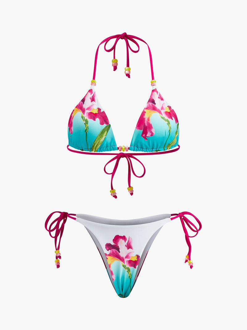 Çekici Çiçekli Boncuklu Bikini Takımı
