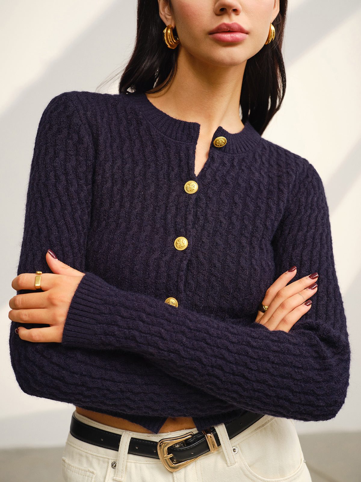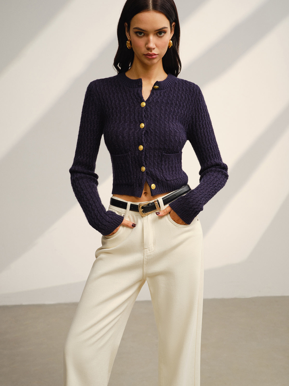 Tasarım: Zarif metal detaylar, pratik cepler ve şirin düğmelerle tasarlanmış bu kazak, sofistike günlük giyimin tam bir örneğidir.