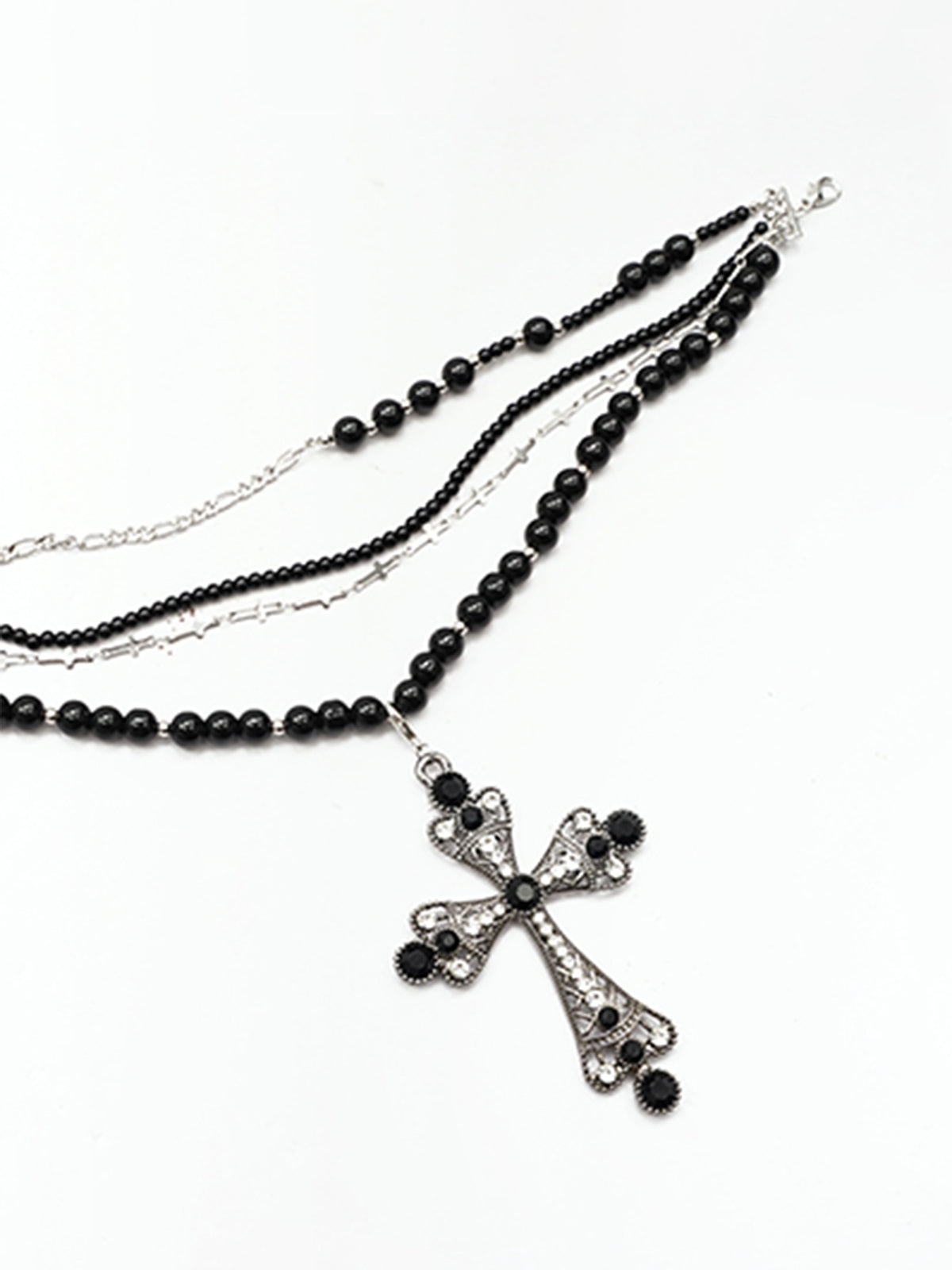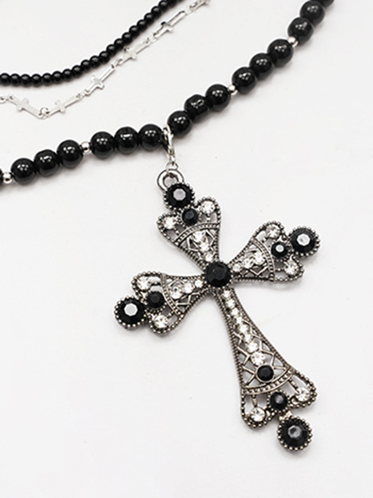 Cadılar Bayramı Yığmalı Kristal Taşlı Haç Kolye