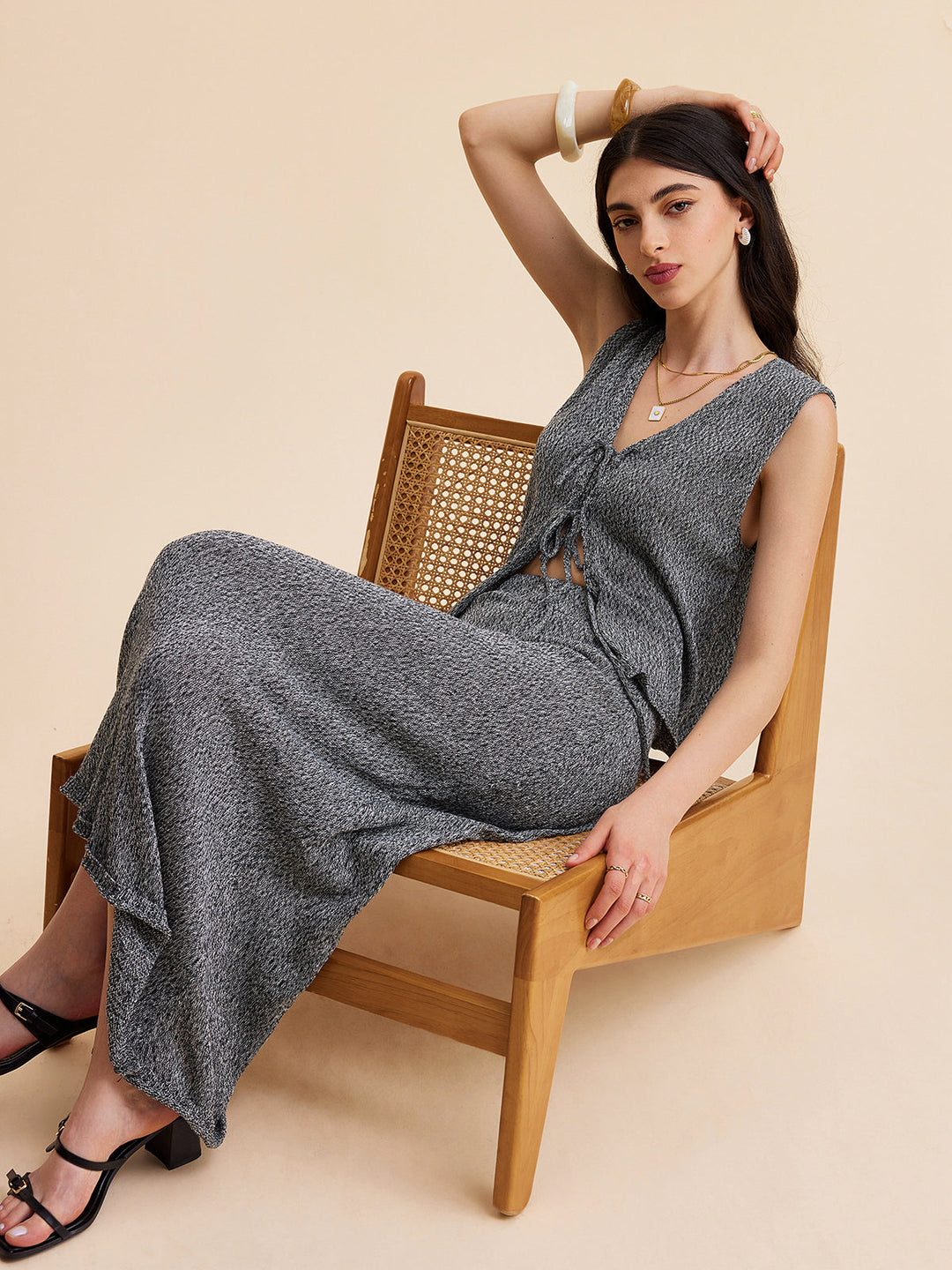 Şık Uzun Triko Yelek ve Şık Bağlama Detayı