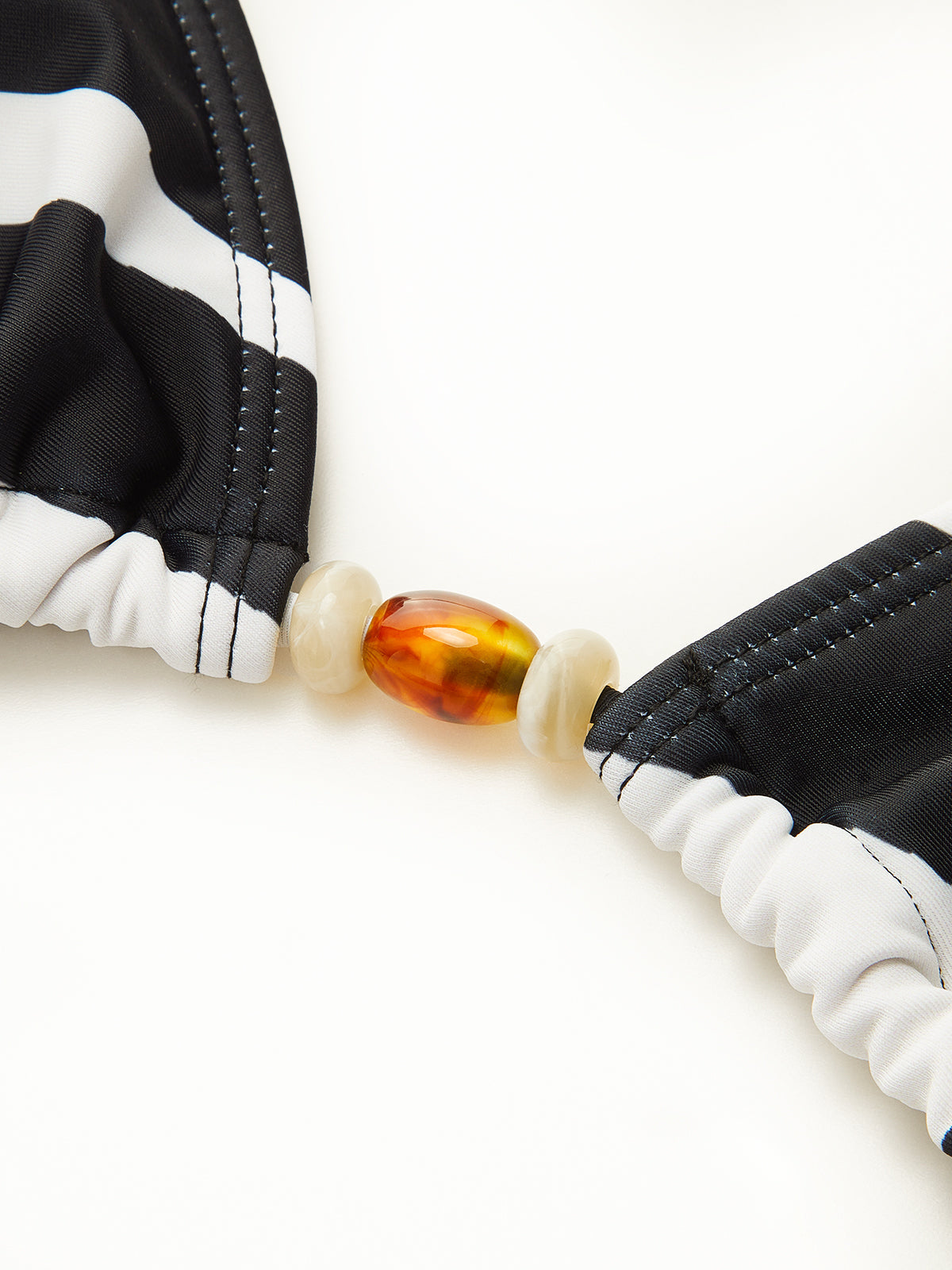 Renkli Üçgen Desenli Çizgili Bikini Takımı