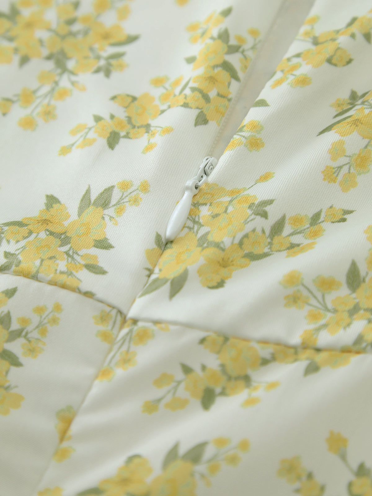Çiçek Desenli Düğümlü Cami Uzun Elbise