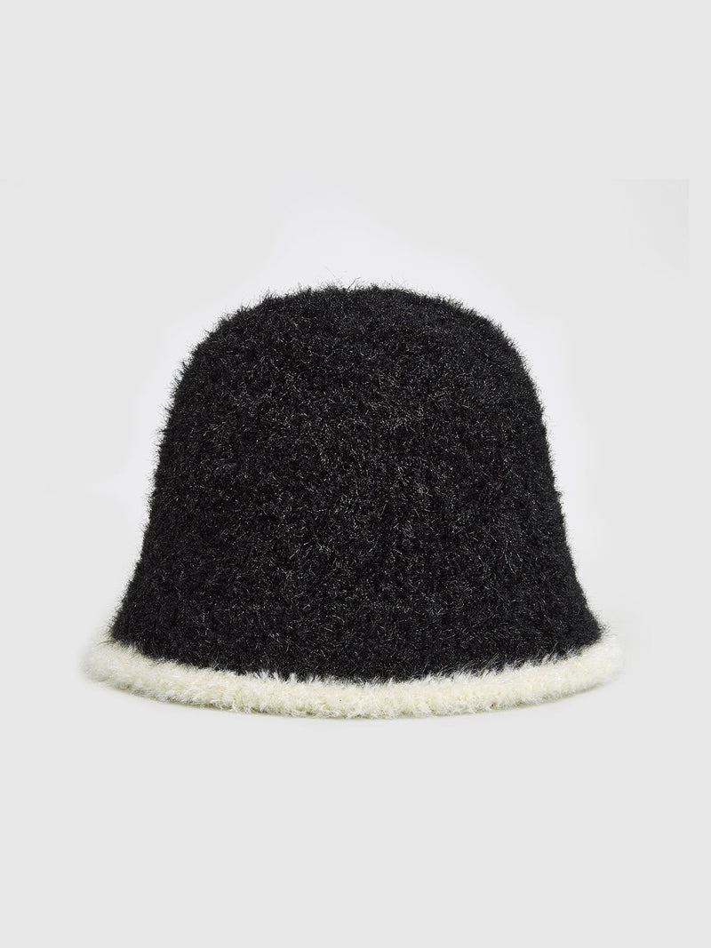 Kontrast Şerit Kadife Buklet Şapka