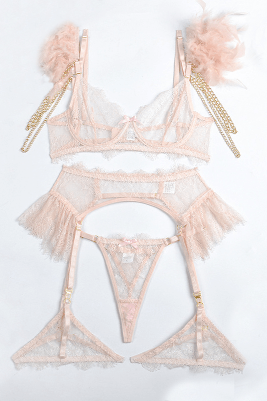 Dört Parçalı Şık Dantel İç Giyim Seti - PRIVATE PINK Ekim Pembe